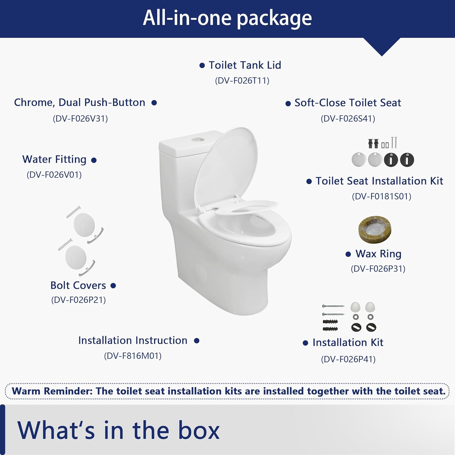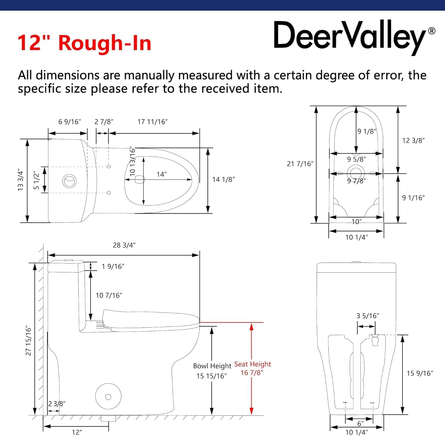 Deer Valley One Piece Toilet, DV-1F026 Elongated Toilet with Powerful Dual Flush 0.8/1.28 GPF, Soft-Close Seat, Standard Height, Easy-Clean Skirted Design, 12" Rough-In