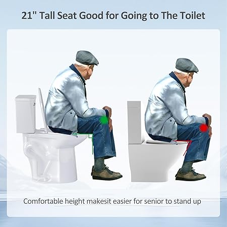 - Comfort Height: This 21 Inch Extra Tall Toilet Is Designed For Comfort, Ideal For Seniors And Those With Mobility Issues. Compared To Traditional Toilets, Its Height Is More Ergonomic, Reducing Pressure When Bending Over, Making It Easier For Users To Sit Down And Stand Up.